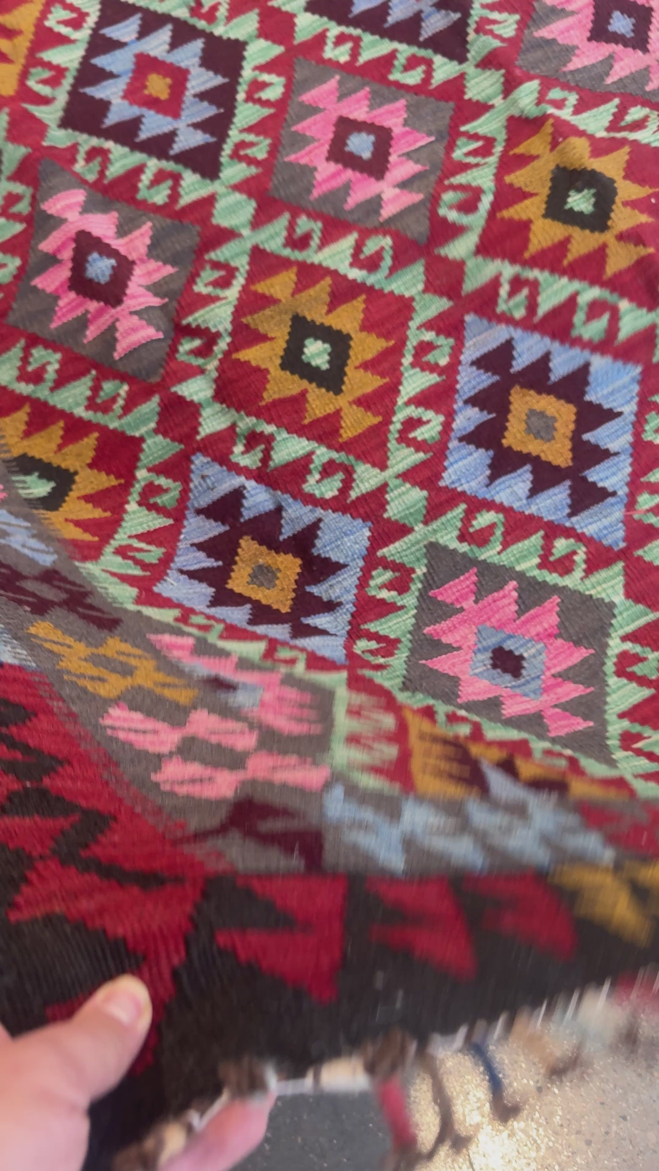 Our rugs are truly unique and crafted with care. Their vintage and handmade nature means they may have imperfections and signs of wear, which add character. Each rug is handmade, so it may not be a perfect rectangle.