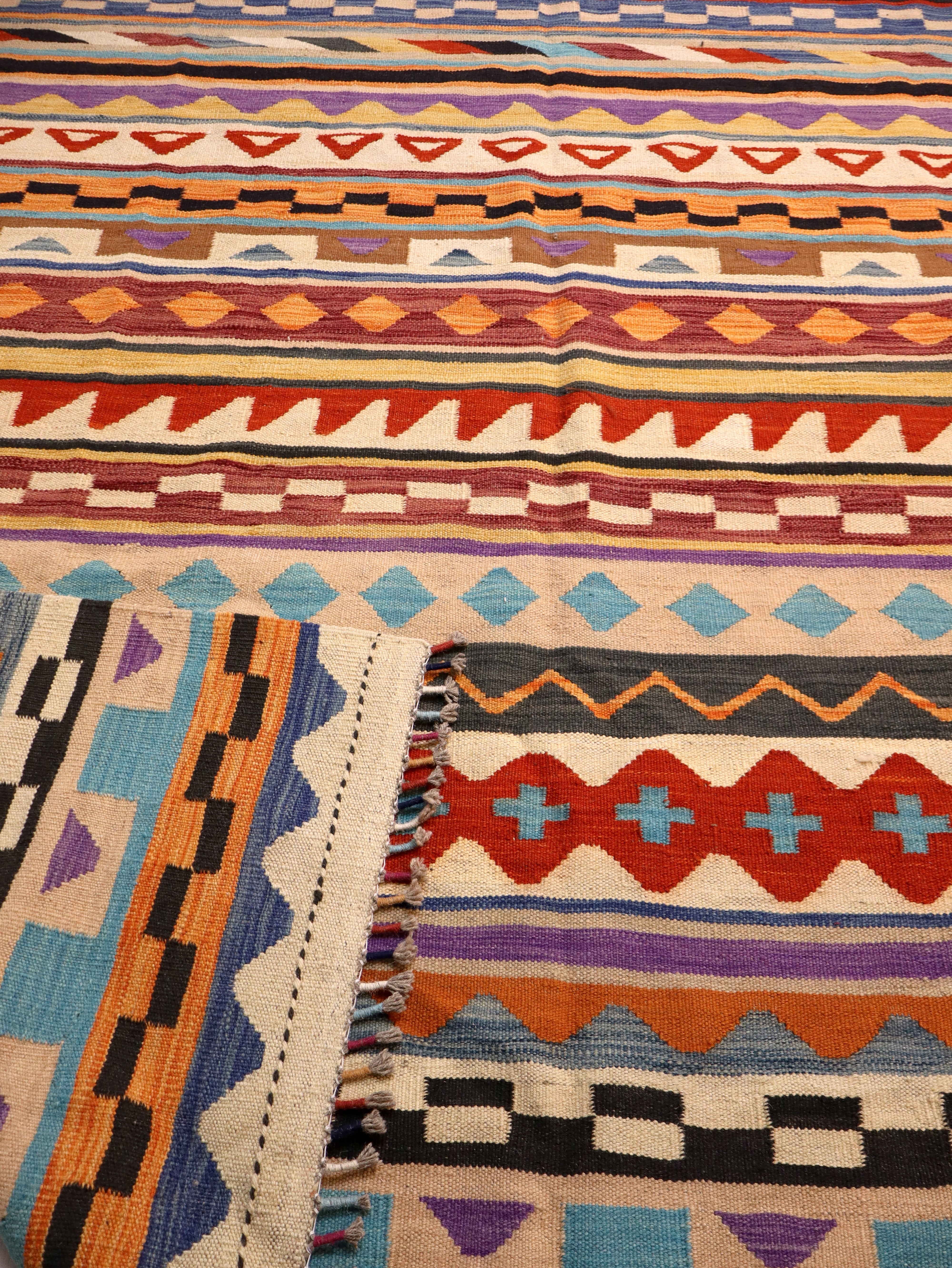 • Materials: Handwoven wool flatweave on a wool foundation
