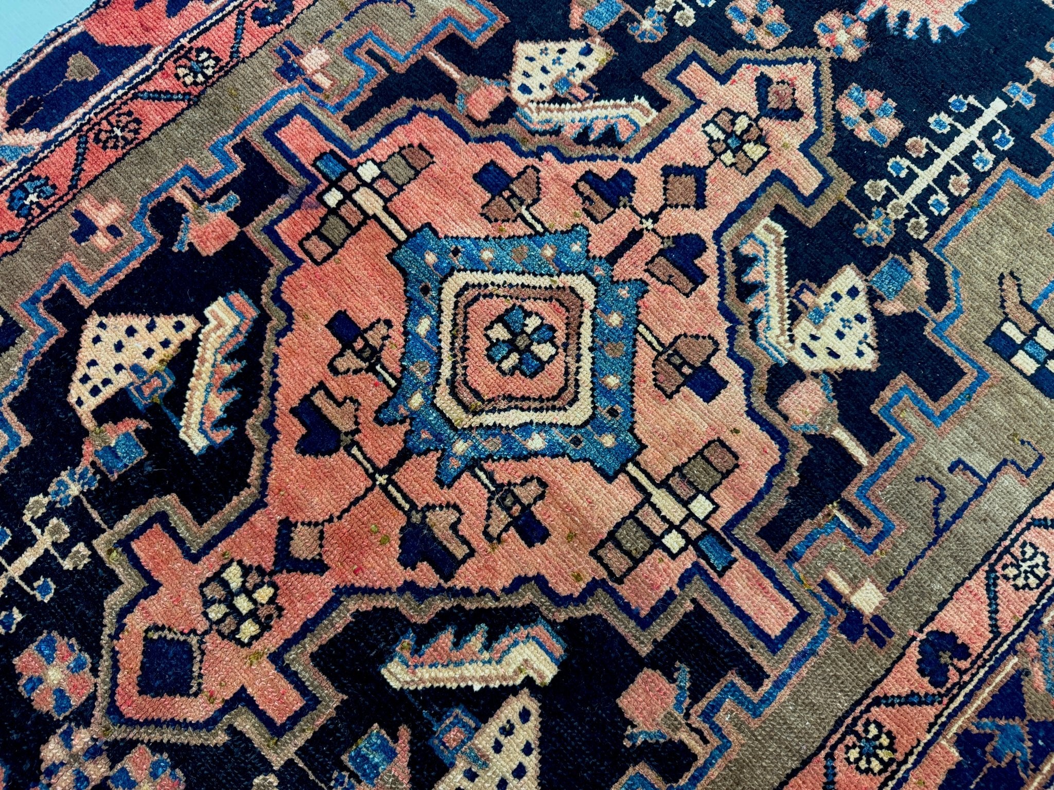 Our rugs are truly unique and crafted with care. Their vintage and handmade nature means they may have imperfections and signs of wear, which add character. Each rug is handmade, so it may not be a perfect rectangle.