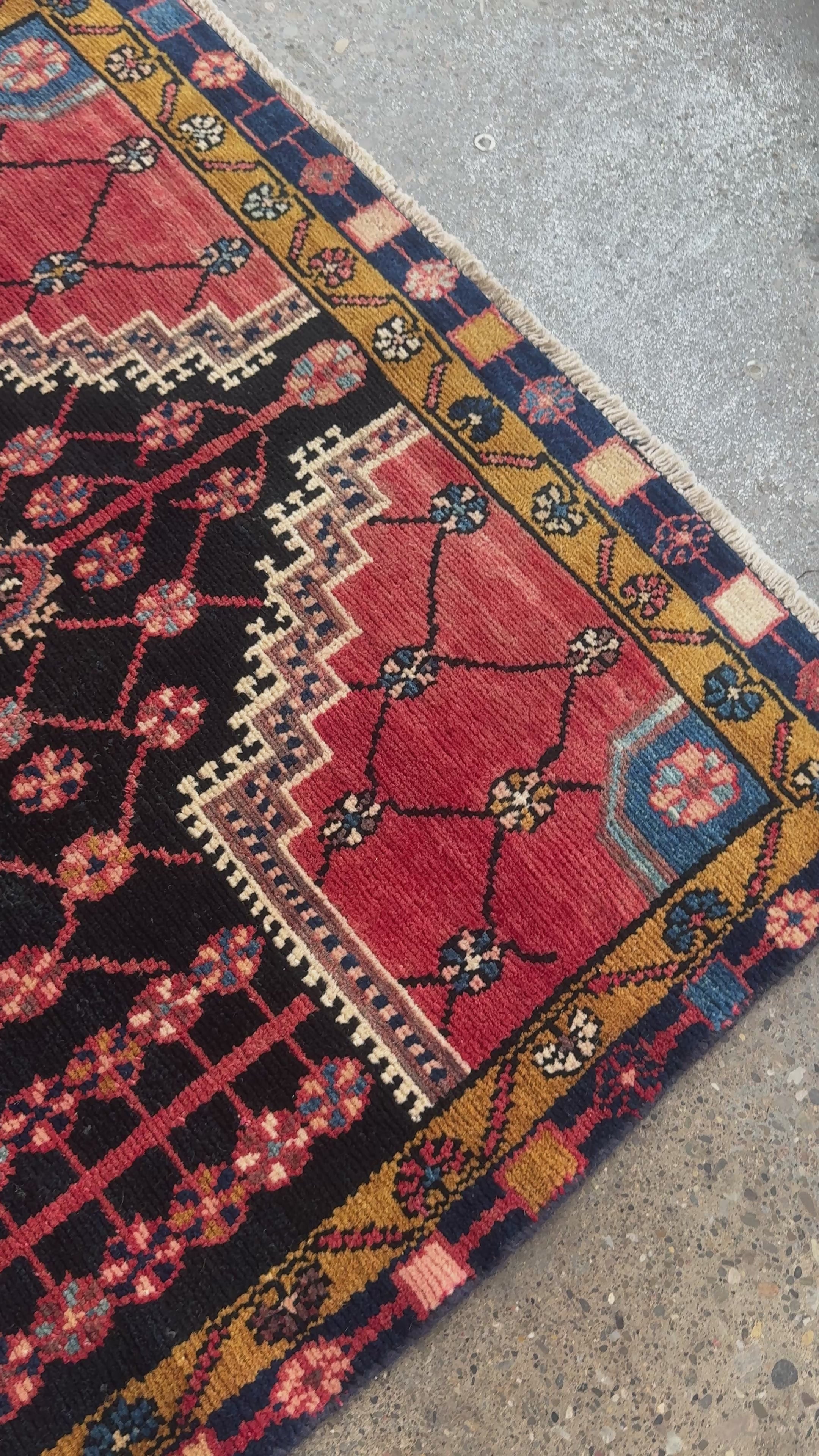 Our rugs are truly unique and crafted with care. Their vintage and handmade nature means they may have imperfections and signs of wear, which add character. Each rug is handmade, so it may not be a perfect rectangle.