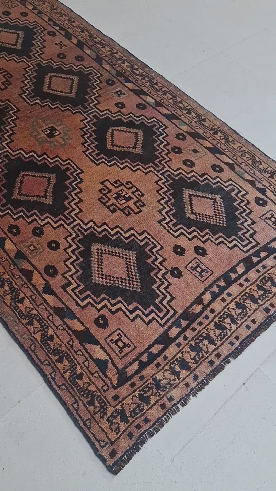 Our rugs are truly unique and crafted with care. Their vintage and handmade nature means they may have imperfections and signs of wear, which add character. Each rug is handmade, so it may not be a perfect rectangle.