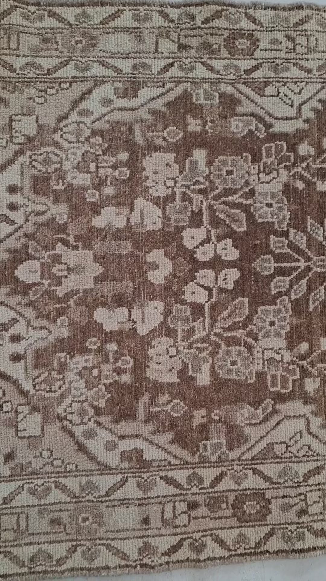 Our rugs are truly unique and crafted with care. Their vintage and handmade nature means they may have imperfections and signs of wear, which add character. Each rug is handmade, so it may not be a perfect rectangle.