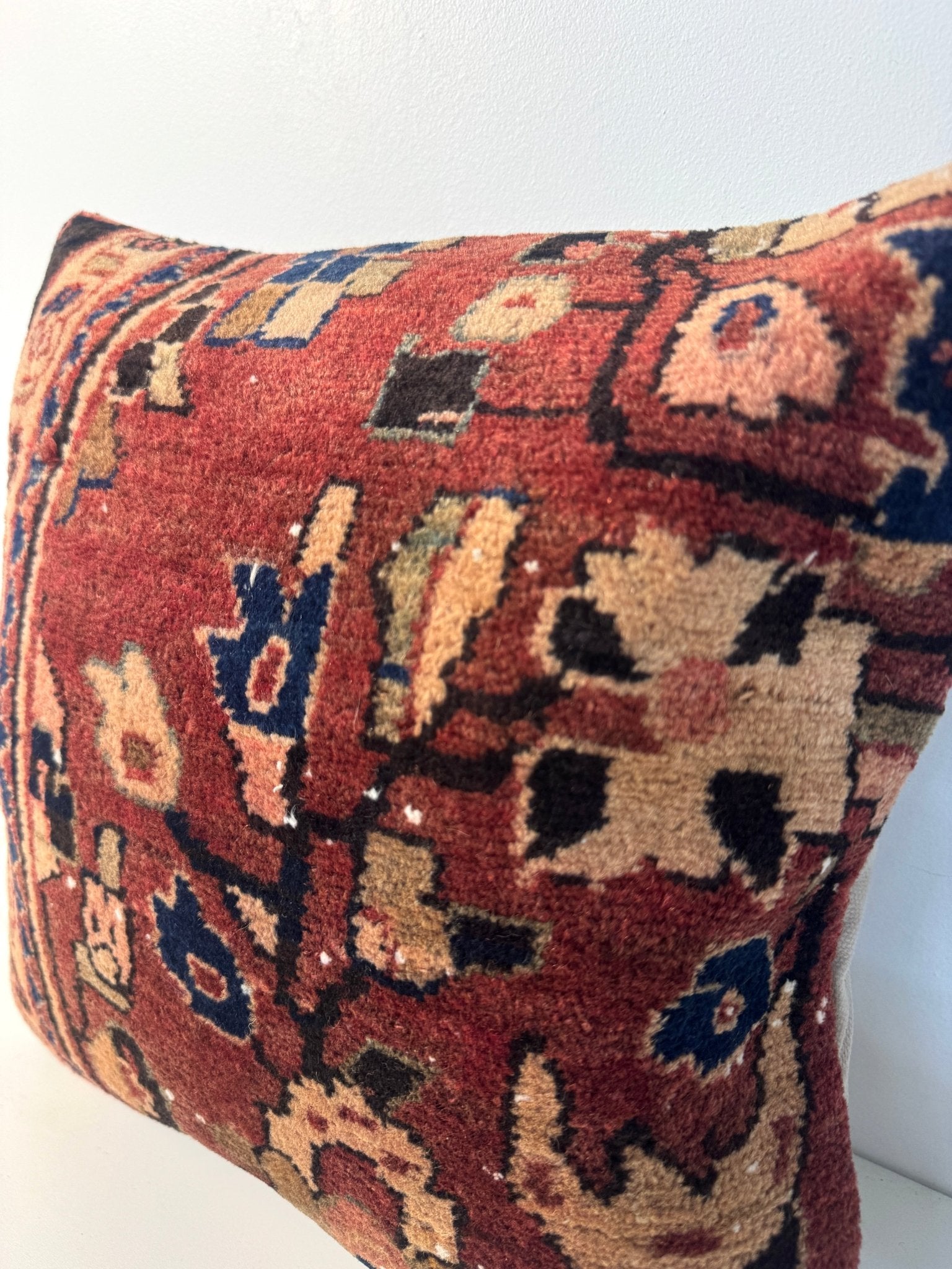 Due to the vintage nature of the materials, each pillow displays authentic wear that enhances its character. Variations in color, texture, and pattern are not flaws, but part of the pillow’s unique story. These characteristics make every piece truly one of a kind.