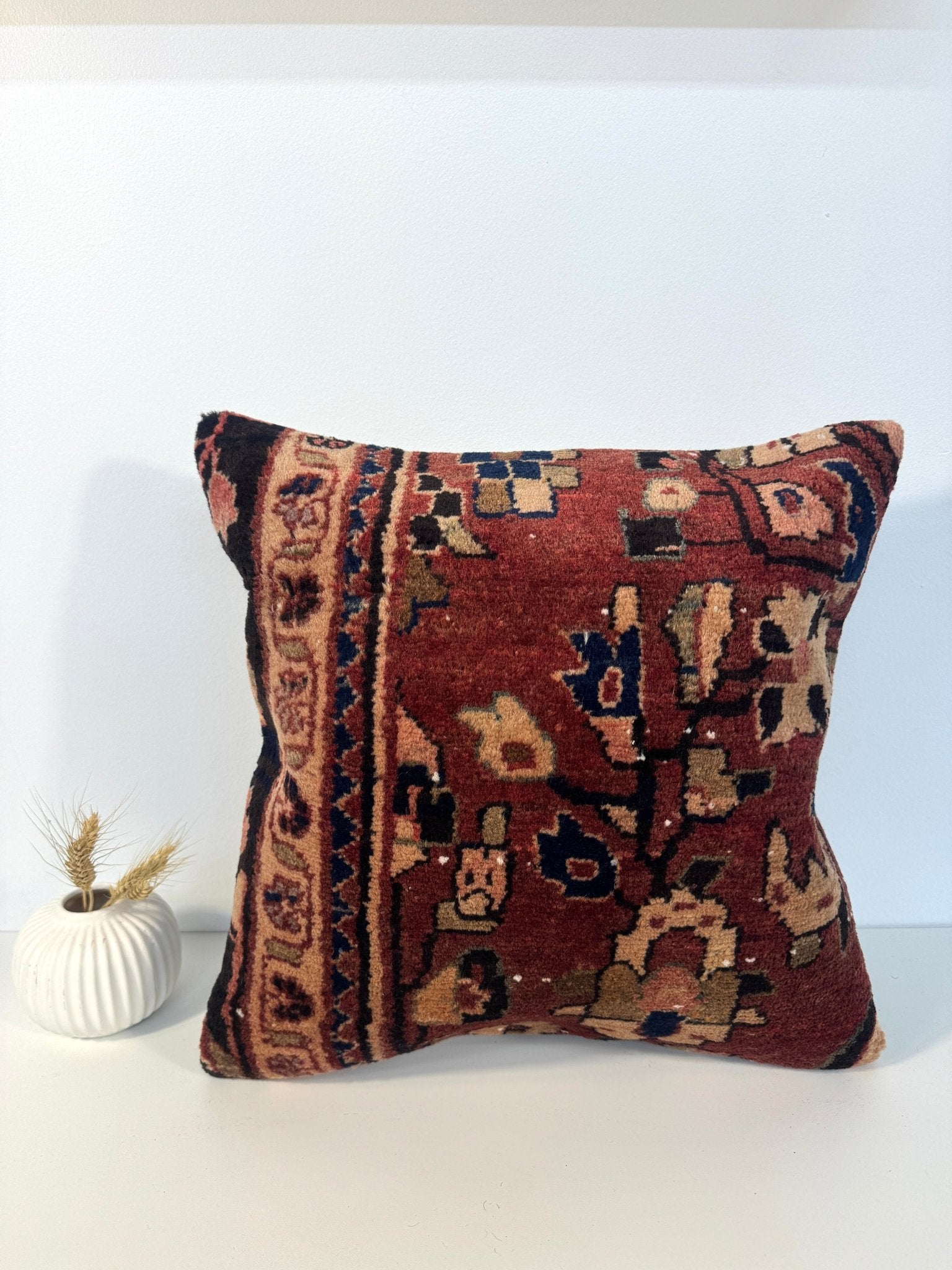 ONE-OF-A-KIND HANDMADE WOOL RUG PILLOW